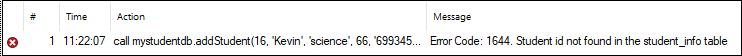 SET MESSAGE_TEXT = 'Student id not found in student_info table';