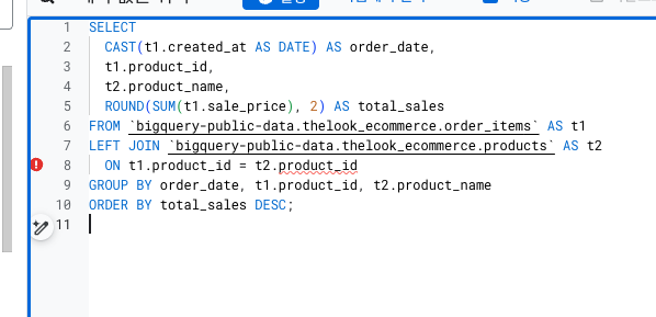SQL쿼리문 작성을 내가하는 것이 아닌 Gemini에게 명령해서 만들었는데,