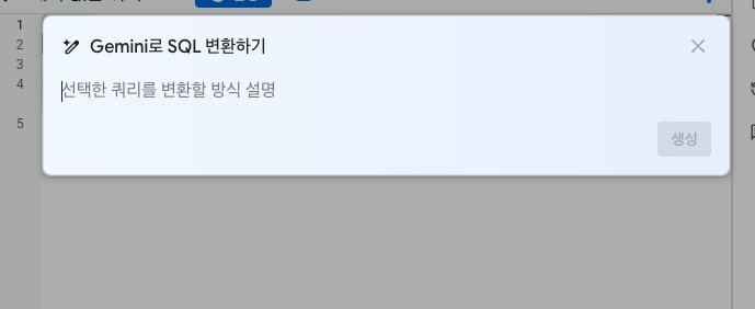 코드를 입력하는 곳이나 sql을 입력하는 곳의 Gemini를 활용해야 한다.